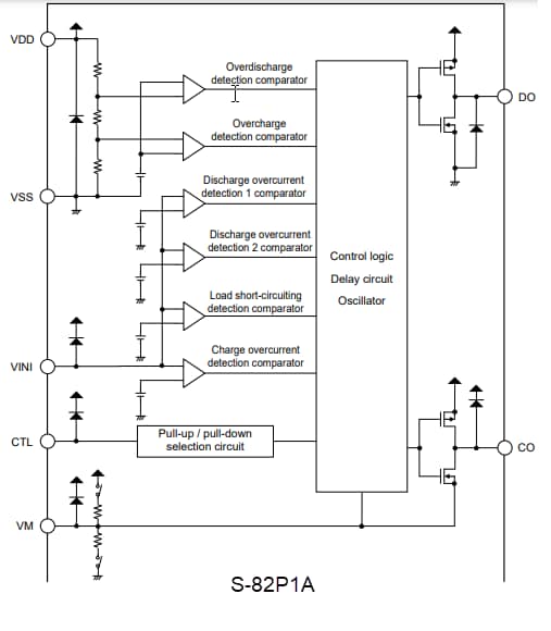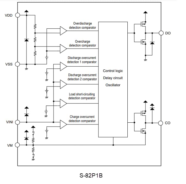 - Release voltage of discharge overcurrent status - discharge overcurrent release voltage (VRIOV) = VDD × 0.8V (typical)